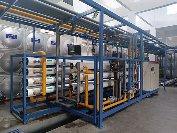 3、高效節能:設備采用高效的水處理工藝,能夠以較低的能源消耗和化學劑使用量來提供高純度水資源。設備還具備智能化控製係統,能夠根據實時需求進行調節,優化能源利用效率。